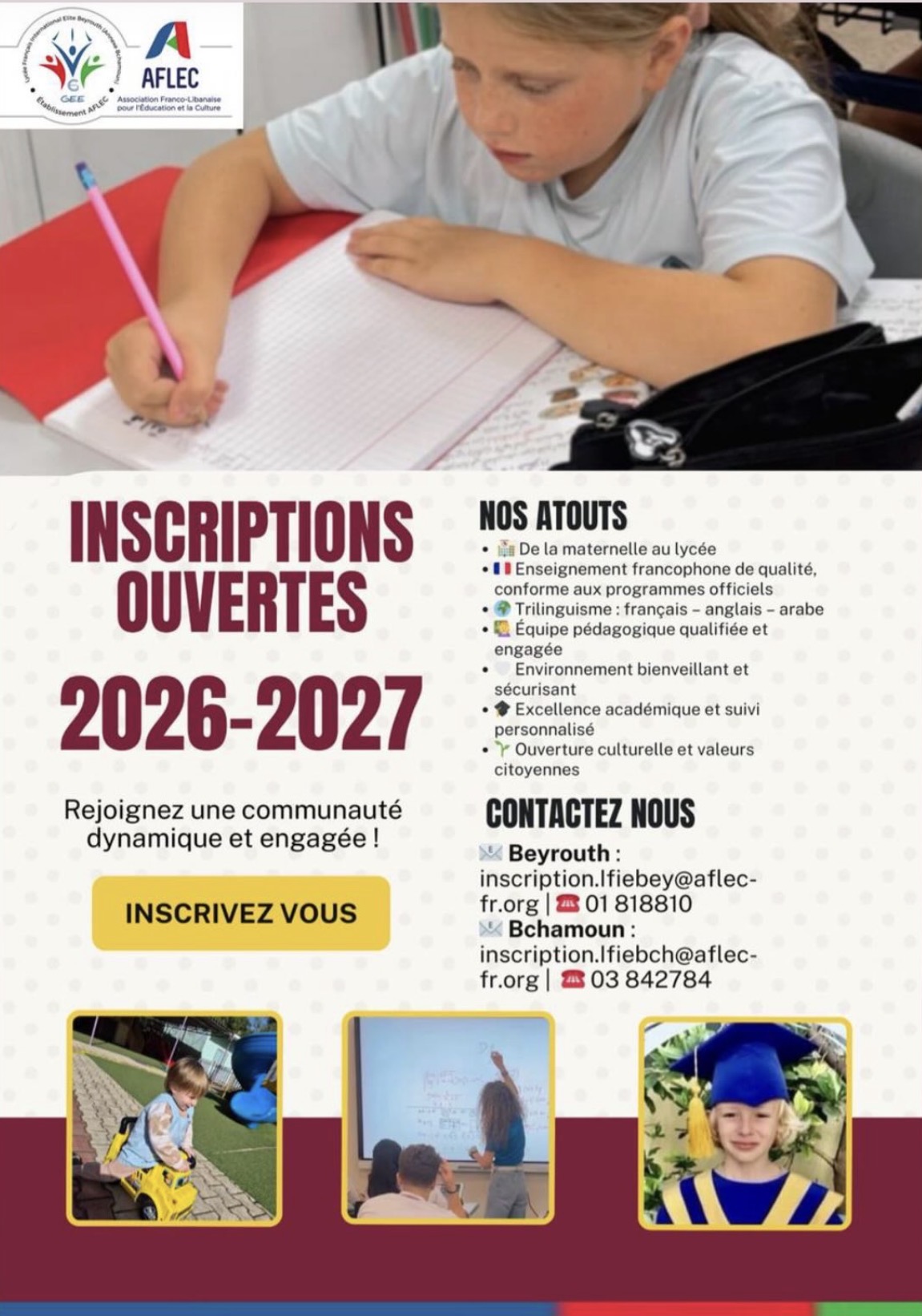 En 2024, nos élèves peuvent présenter le Baccalauréat Français International Trilingue: Français, Anglais (américain), Arabe. Ce diplôme leur donne les conditions …